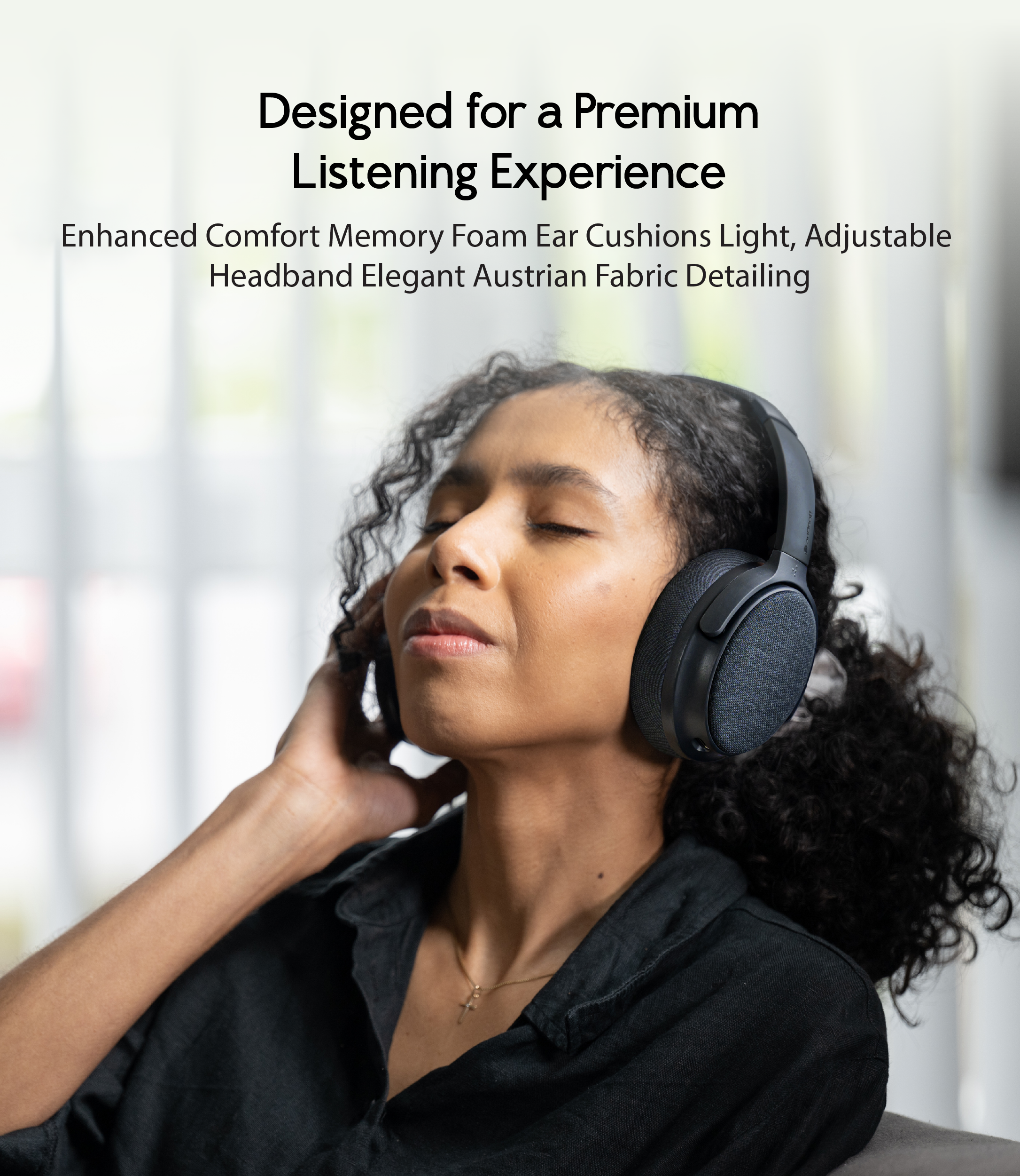 Enhanced Comfortable Memory Foam Ear Cushions, Adjustable Headband Elegant Austrian Fabric Detailing