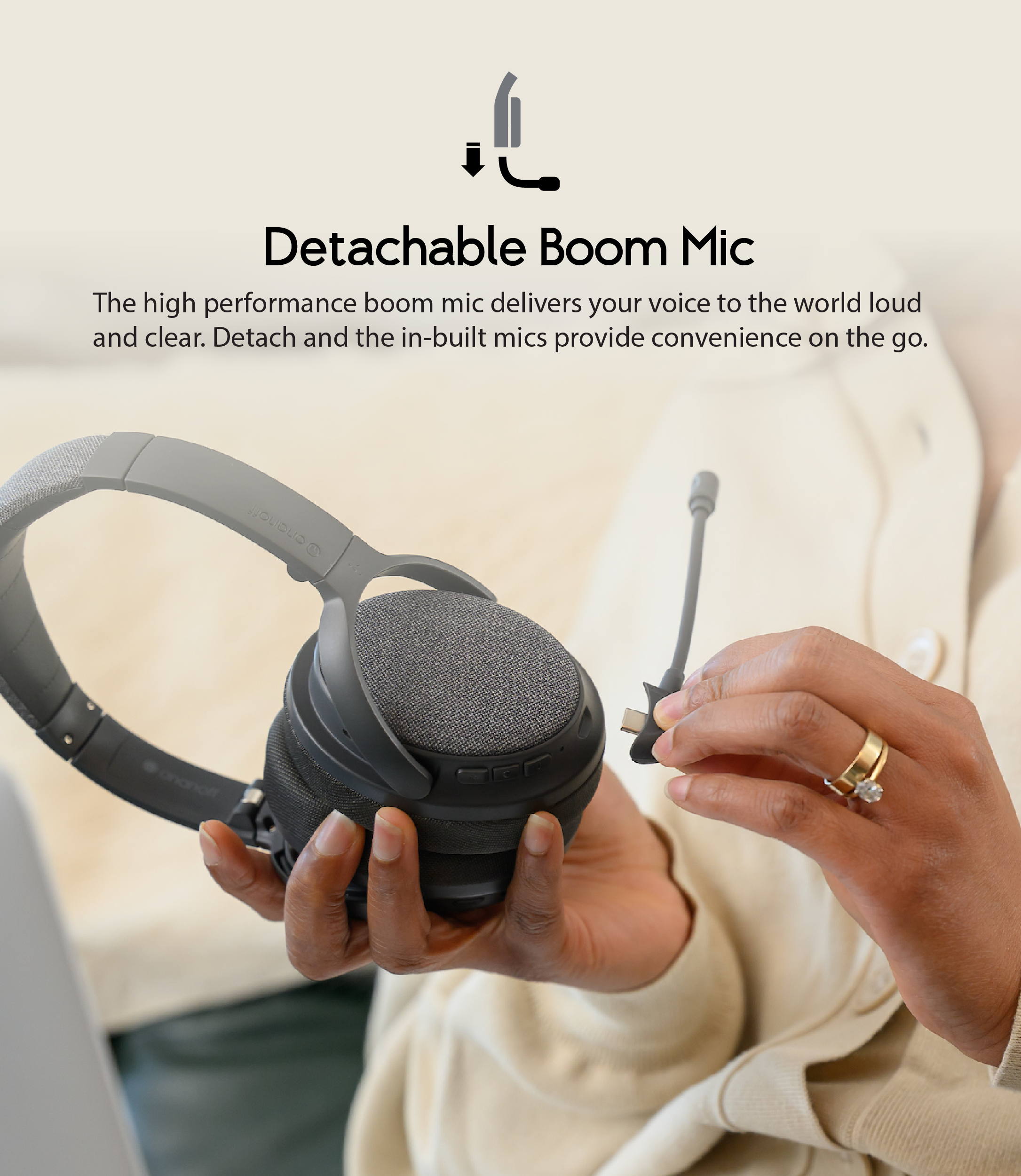 The FOKUS+ boast the convenience with its woes charging stand, enabling a seamless and user-friendly experience. Simply place the headphones on the stand and it will automatically switch off and start charging.