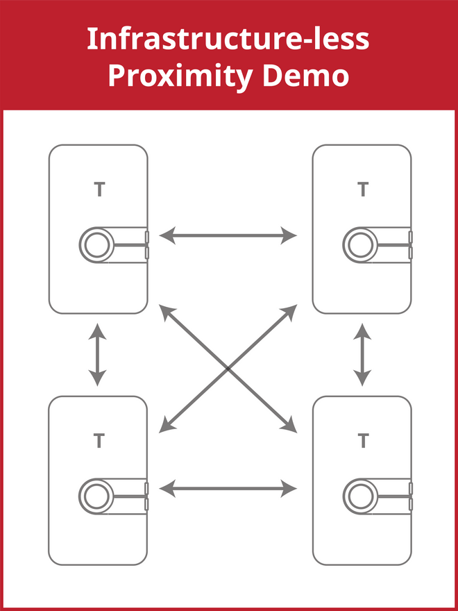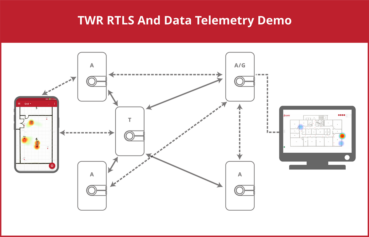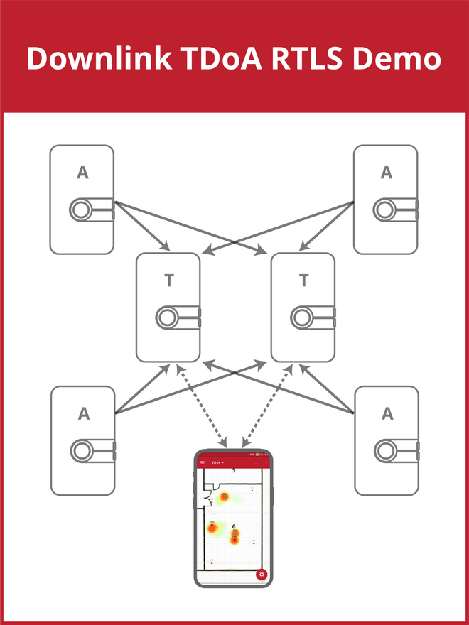 Devices with preloaded all-in-one firmware stack that provides all possible UWB demos from Nearby Interaction with an iPhone, Angle-of-Arrival location, infrastructure-less proximity between the Tags, real-time location and data telemetry using Two-Way Ranging, Downlink TDoA and Uplink TDoA.